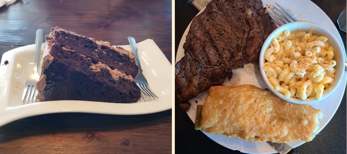Must-try dishes include the Country Fried Steak and the Bourbon Chicken. Their desserts, especially the Red Velvet Cake, also receive rave reviews.